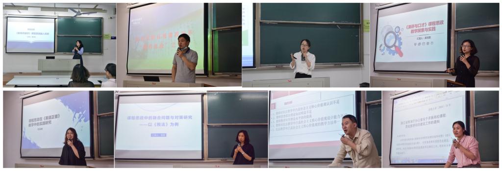 会议伊始,郭万明老师向全体老师传达了课程思政建设的相关文件精神,而后,我院邀请近年从事课程思政项目研究的老师对课程思政教学方面的理论研究与教学实践经验进行了分享。在第三个环节,各教研室各自组织本教研室教师结合自己的课程思政教学实践对浙工大计伟荣教授教授《课程思政赋能“金课”建设——浙工大课程思政建设思考》的讲座和当天我院教师分享的经验进行了研讨。