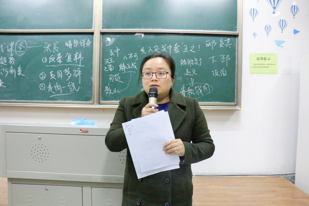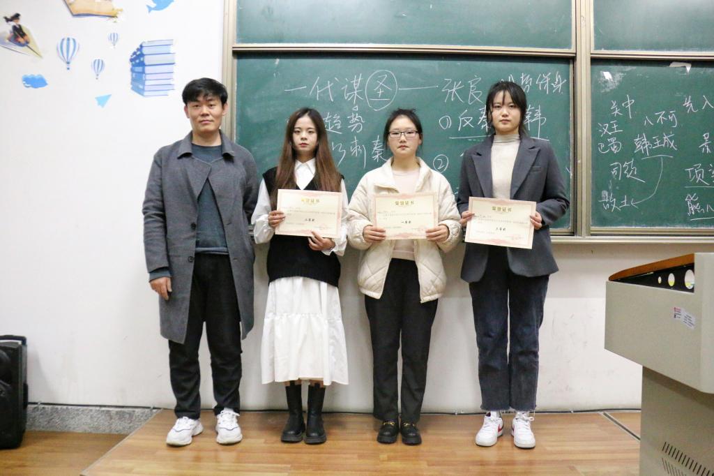 根据报名情况经初步筛选,八位选手进入复赛试讲环节,经过充分准备,她们分别以《春》、《石壕吏》、《Skills and methods of filling in grammar blanks》、《日本文化之血型迷信》、《如何正确的对句子进行断句》、《一代谋圣——张良》等丰富多样的内容进行授课,用生动的教学语言和规范的板书为大家试讲。他们站在讲台上,或侃侃而谈历史人物,或运用专业知识为大家进行讲解,或是对其他文化进行了趣味普及,为现场的观众们带来了身临其境的课堂体验。在比赛的最后,由黄欢老师进行点评,她对选手们的表现给予了充分肯定。她强调讲课要突出重点内容,注意教学方法,改善讲课时的教态,提高口语表达能力。最终,汉语言N191罗春新表现出色,荣获一等奖,英语N201左家利荣获二等奖,汉语言N201桑小璐荣获三等奖。