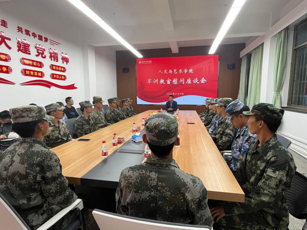 为高质量完成军训任务,确保军训工作取得实效,2022年11月9日下午,我院组织召开军训教官慰问座谈会,院党委副书记杨燕群、全体辅导员及学生教官们参加座谈会。