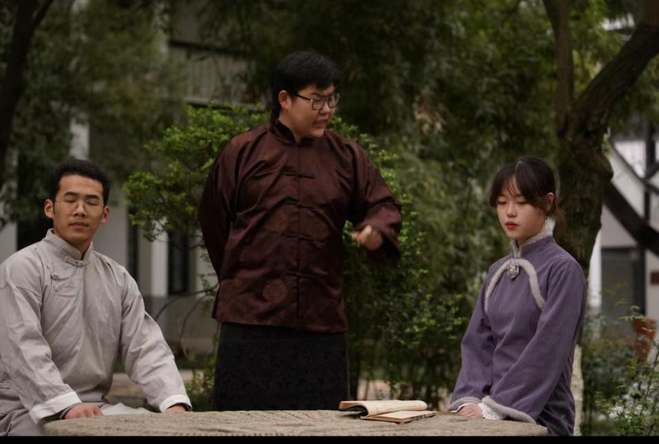 新塍镇是嘉兴早期进步青年的集会地,传播马克思主义思想较早的地方。戏剧社成员在凤山亭感受百年前“新塍青年读书会”的挥斥方遒,濡染《新塍半月刊》的红色传播力量,我校先锋戏剧社成员分别演绎了沉浸式红色话剧《南湖1921》中《嘉来茶馆》《米行》以及《南北货台》三个场景。