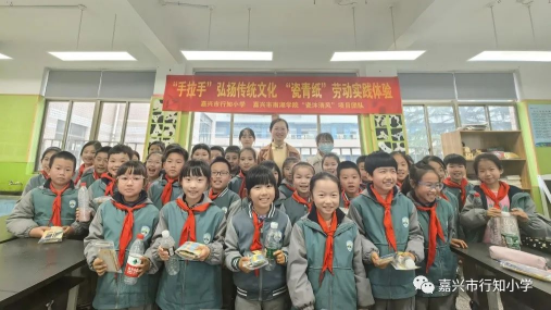 嘉兴南湖学院的“瓷沐清风”小组,致力于传承非遗文化中的富有江南韵味的瓷青纸为己任。近日该小组的沈佳妮、刘青、龚奕卉等同学深入研究调查,来到嘉兴市行知小学进行纸的宣传并且身临其境地体验造纸过程。在成员们的努力下不仅宣传了瓷青纸还让孩子们体会到了中华博大精深的造纸文化内涵,在传承瓷青纸等非遗文化的过程中实现中小学生的美劳美育。