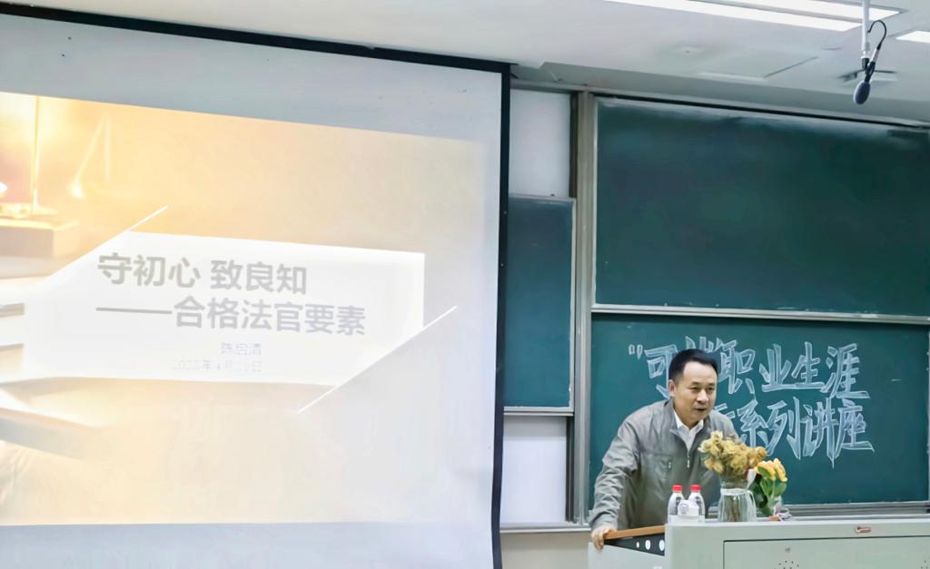 第一讲的主题是“从一名大学生到一名检察官,需要走几步?”,朱依欣专委介绍了检察院内部机构的组成、各机构职能及其相互关系,使同学们较为具体和客观地了解了检察官这一职业。第二讲的主题是“考研交流会”,历年考研成功学子代表结合自身考研经历向学弟学妹们用心用情地分享了自身的考研心得。第三讲的主题是“如何做一名合格的法官”。陈启清庭长从日常检察和审判实践出发,讲法理、讲办案、讲职业操守,让同学们明晰作为一名法官需要着重培养的能力。