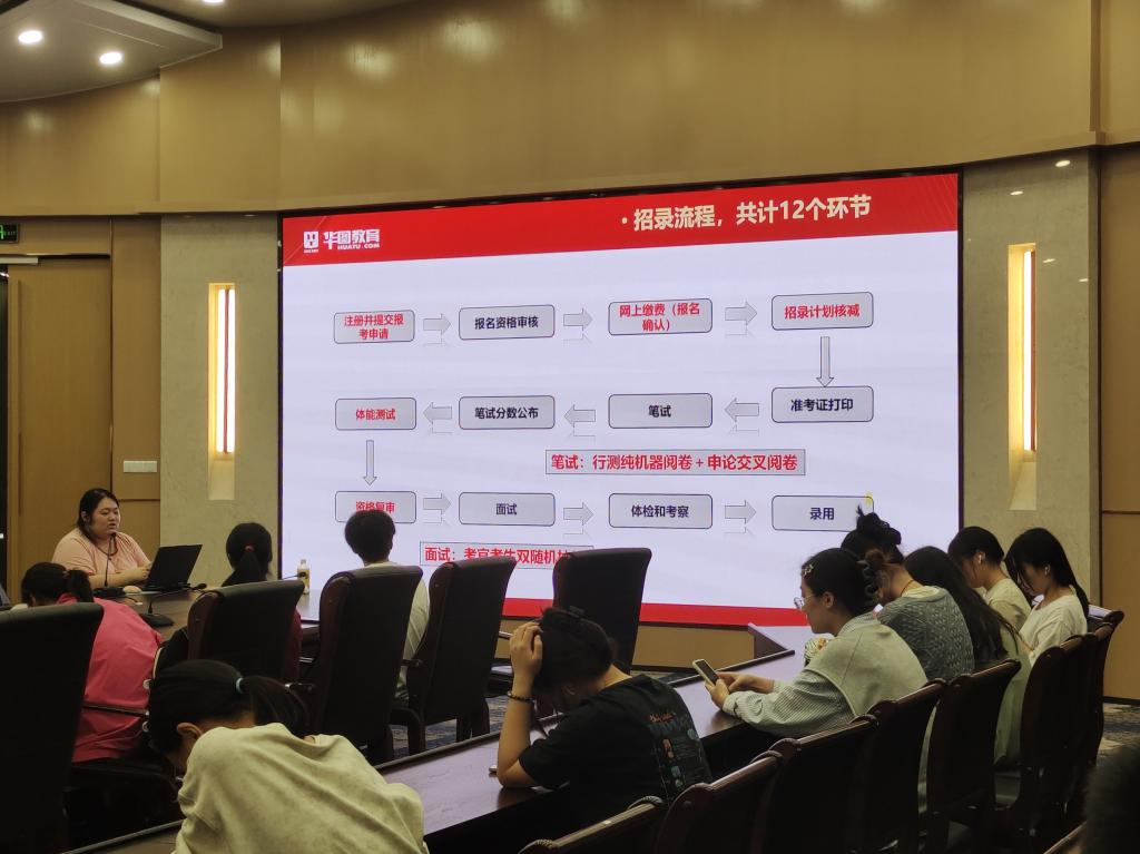 讲座邀请了华图教育崔晓枫老师为大家进行讲解指导。她通过介绍国省考的的具体招录流程、岗位要求等注意事项指导学生选择最契合自身条件的岗位,并结合考试真题举例讲解解题技巧。会上,同学们结合自身存在困惑进行了咨询。