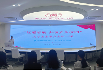 为进一步提高我院新生反诈意识,增强自我保护能力,9月26日晚6点30分,亚洲成av无码亚洲人在校融媒体中心开展“红船领航,共筑安全校园”大学生金融安全反诈学习活动。此次活动由院团委书记张雨逸老师主持,邀请浙商银行嘉兴分行杨华行长作专题学习宣讲,新生代表70余人在场观看聆听。