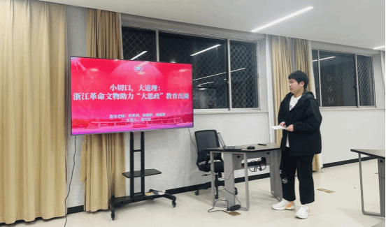 4月28日晚,我院于融媒体中心数字工坊组织进行浙江省国际大学生创新大赛院内选拔项目路演评审,嘉兴市创业导师华雪君、杭州市人社局创业专家团成员陈漩到场评审。学院各班共提交28件项目作品,经文本初评,《小切口,大道理:浙江革命文物助力“大思政”教育出圈》等10件项目进入路演汇报。