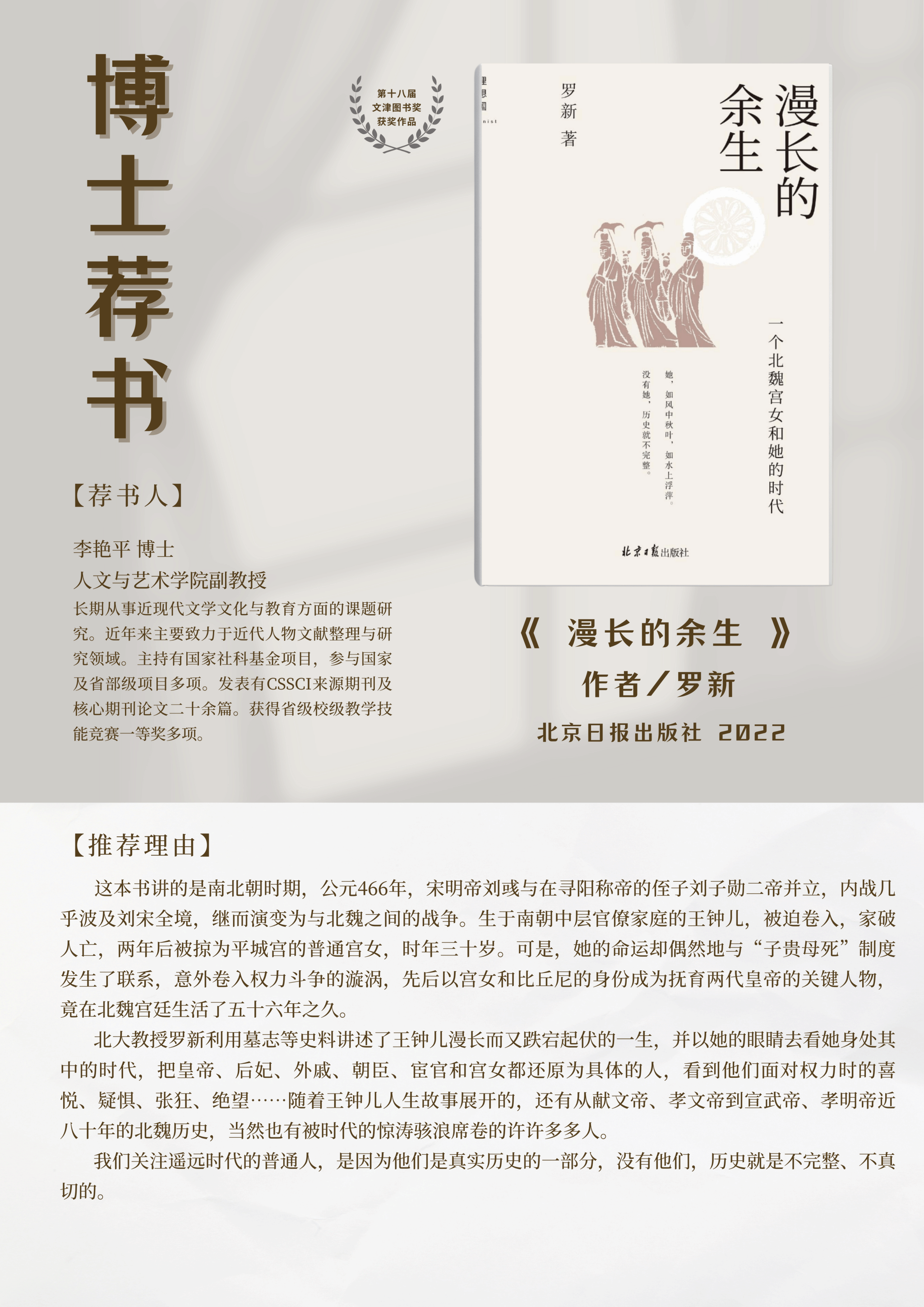 4月22日举行首期博士读书会,由李艳平博士分享《漫长的余生》,欢迎广大师生参与!