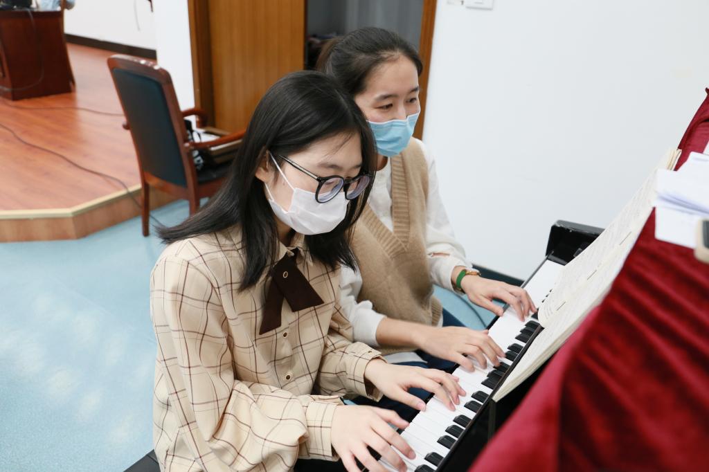 经过前期的报名和筛选,最终有14位同学入选钢琴沙龙活动。根据校园防疫要求,将这些同学分为两组错时开展活动,并要求参与人员必须全程佩戴口罩、隔位就座。本次活动由汉语言文学专业萧莎老师主持。