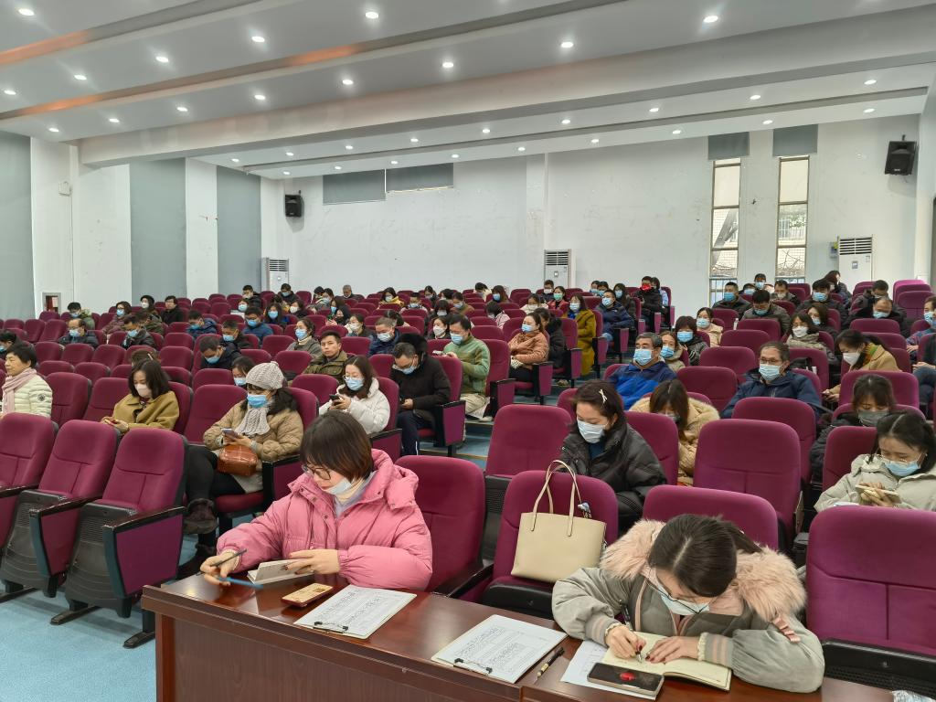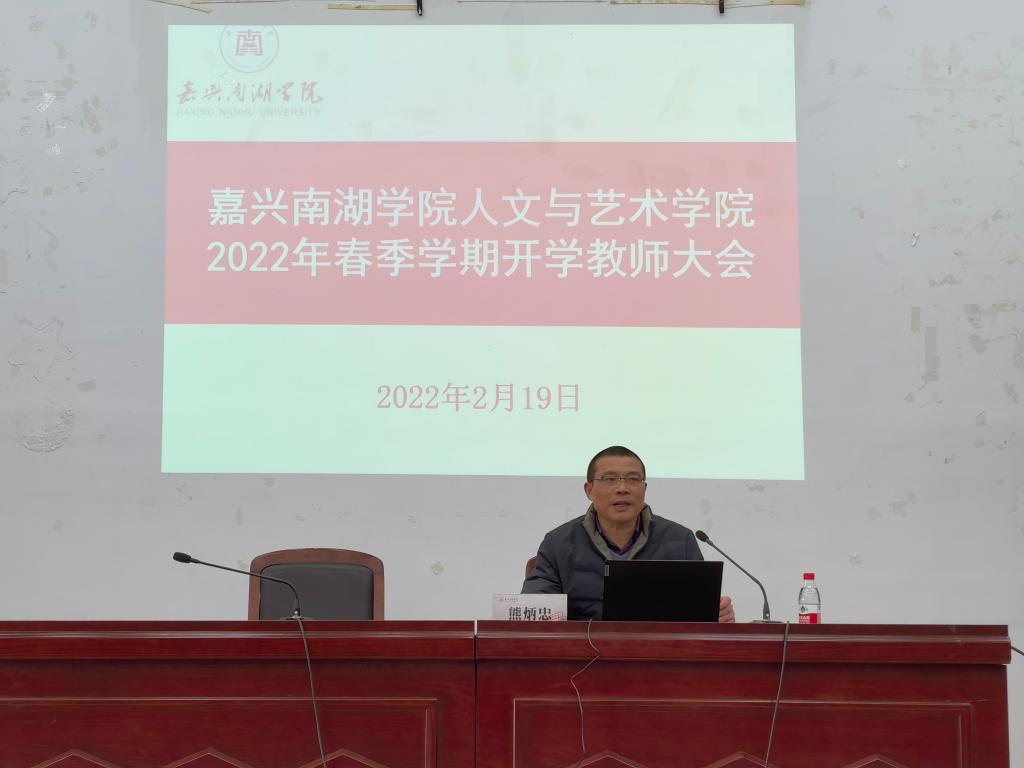 2022年2月19日下午,亚洲成av无码亚洲人在第三报告厅召开2022年春季学期第一次全体教职工大会,会议由学院党委副书记熊炳忠主持。