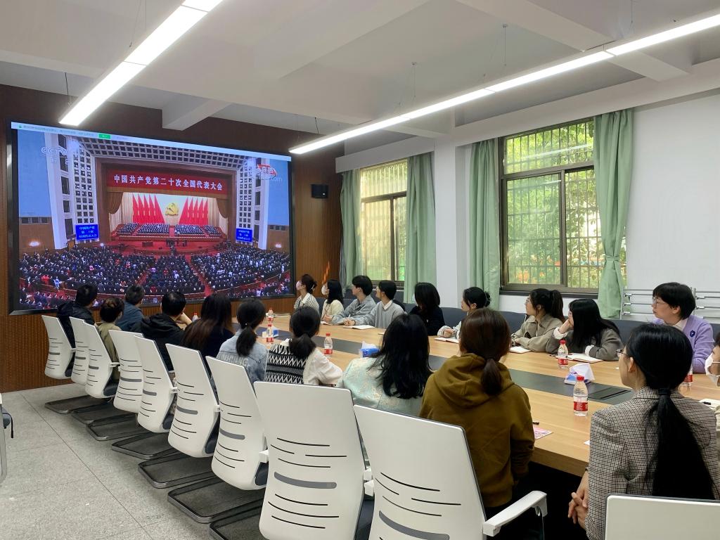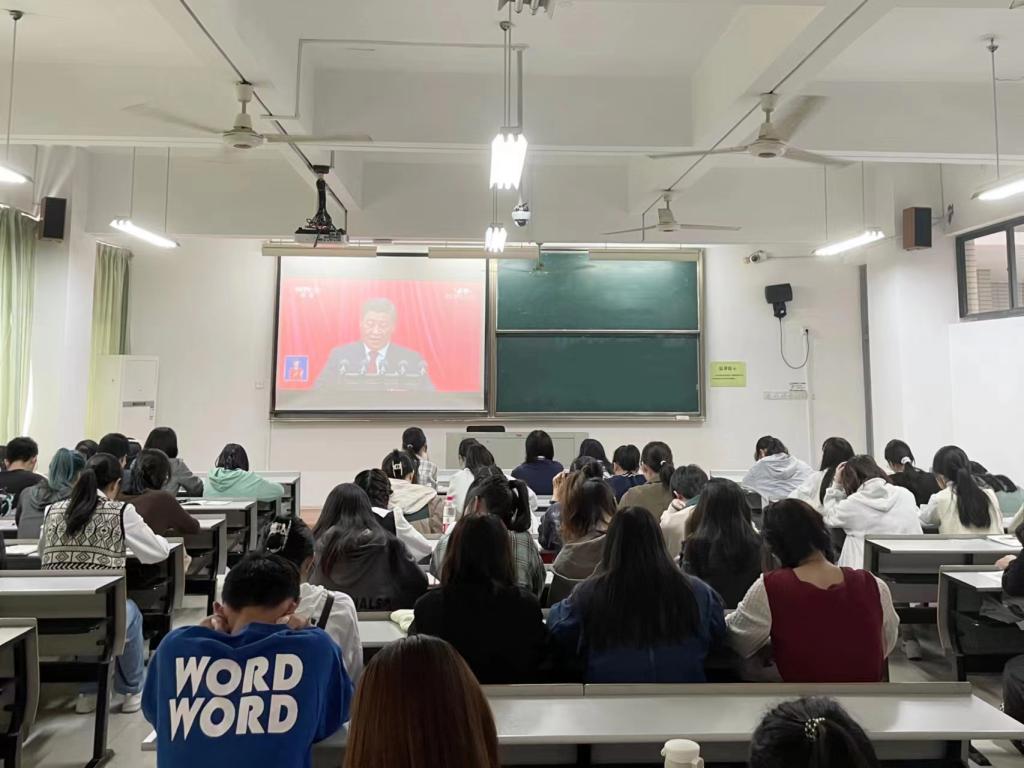2022年10月16日上午10:00,举世瞩目的中国共产党第二十次全国代表大会在北京人民大会堂隆重开幕。嘉兴南湖学院亚洲成av无码亚洲人组织师生党员代表、学生党支部成员、团学组织成员分场集中观看开幕会盛况。广大师生仔细聆听并认真学习报告。