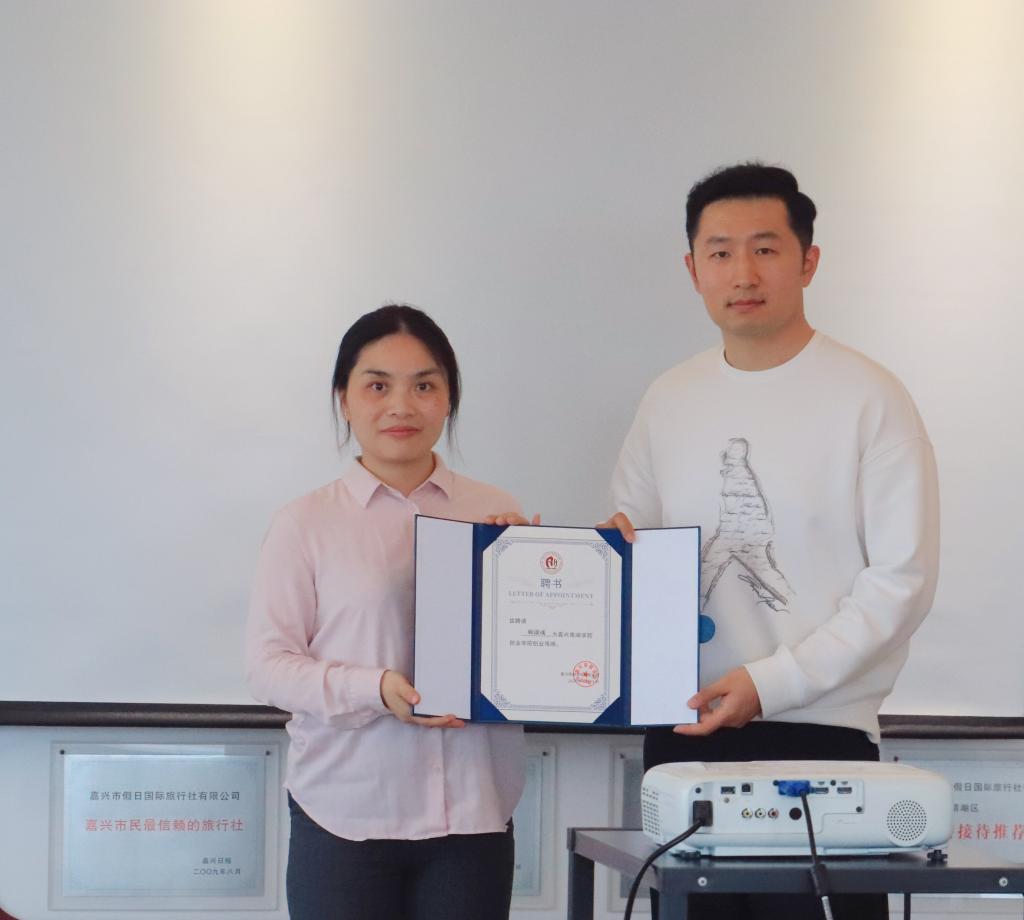 此外,现场还聘任顾潇彧先生为嘉兴南湖学院创业导师、嘉兴南湖学院亚洲成av无码亚洲人青年发展导师,进一步增强校企合作粘性,多方位提升协同育人实效。我院师生一行还参观了嘉兴市假日国际旅行社有限公司办公场所。