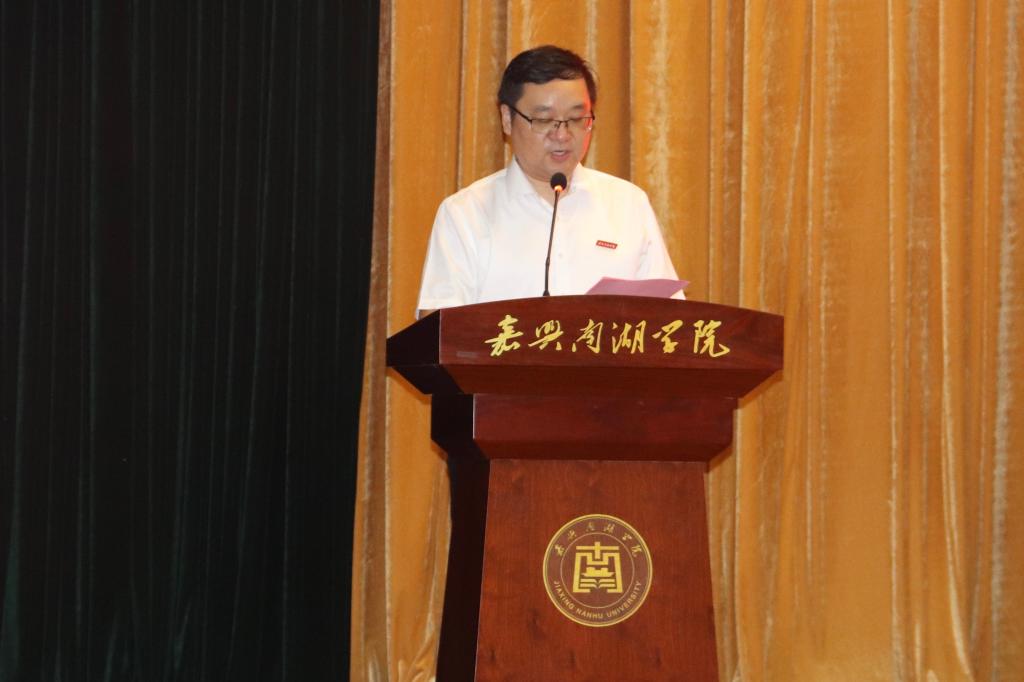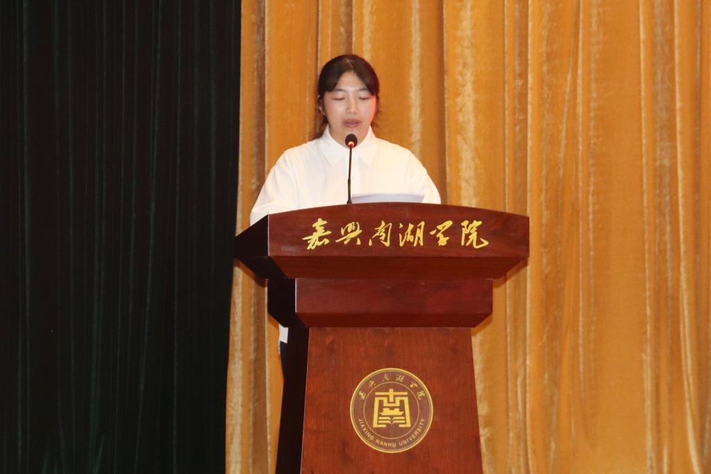 在全体师生起立奏唱国歌后,学院党委书记王晨致辞,王书记对新生的到来表示热烈祝贺,指出嘉兴南湖是我们党开启梦想的启航地,希望同学们要赓续精神血脉,践行红船精神,并对人文学子们提出坚定理想信念、深耕知识学习、开拓国际视野的三点建议。
