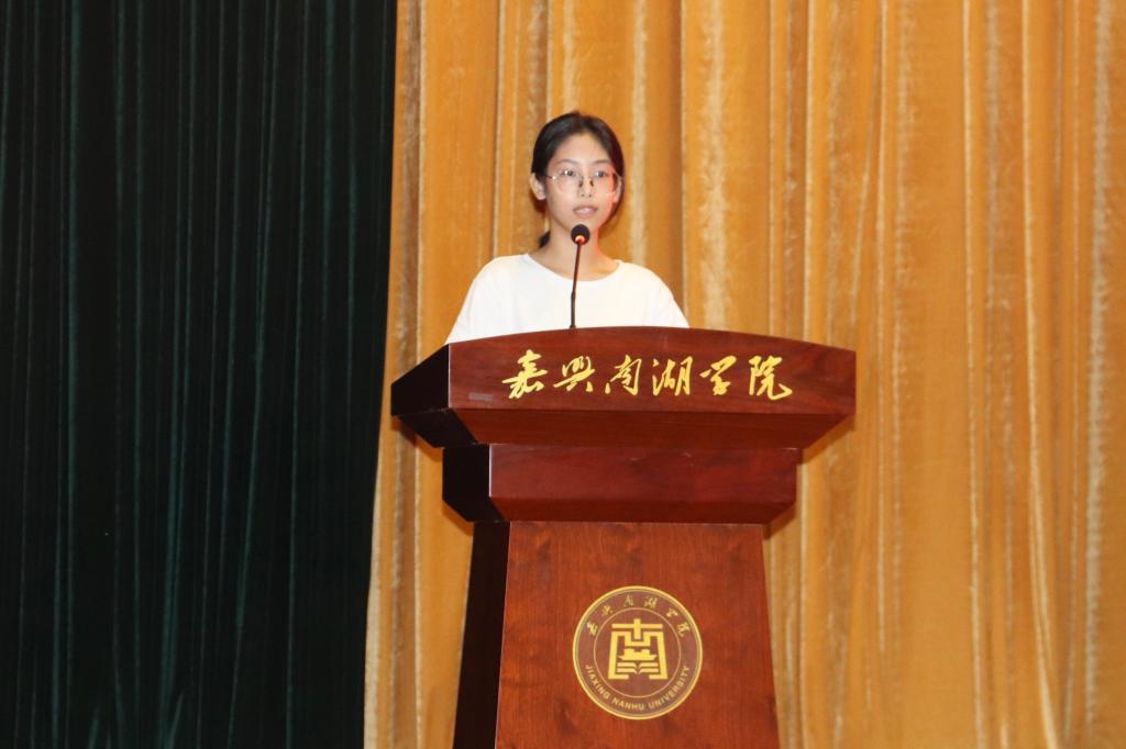 新生代表法学231班的杨深茹和老生代表汉语言N211班的徐嘉玲发言,她们希望同学们能够在大学里面继续努力学习,开启职业梦想,找到自己的奋斗目标。