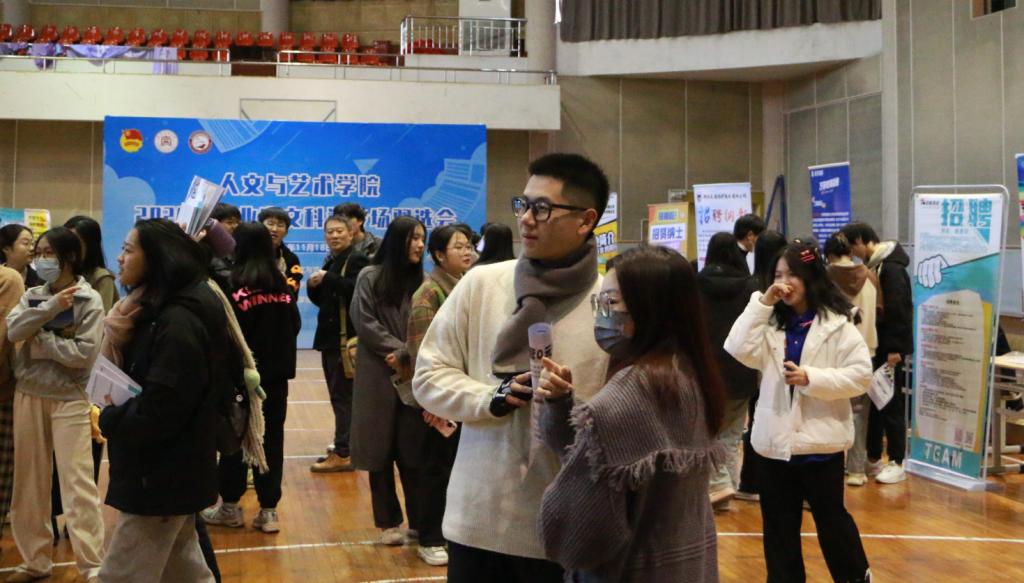 为深入贯彻落实党的二十大精神,认真落实党中央、国务院“稳就业”“保就业”决策部署,为用人单位和毕业生搭建双向选择的平台,推动我院毕业生高质量精准就业,11月18日下午,亚洲成av无码亚洲人2024届毕业生文科类专场双选会在室内篮球馆举行。