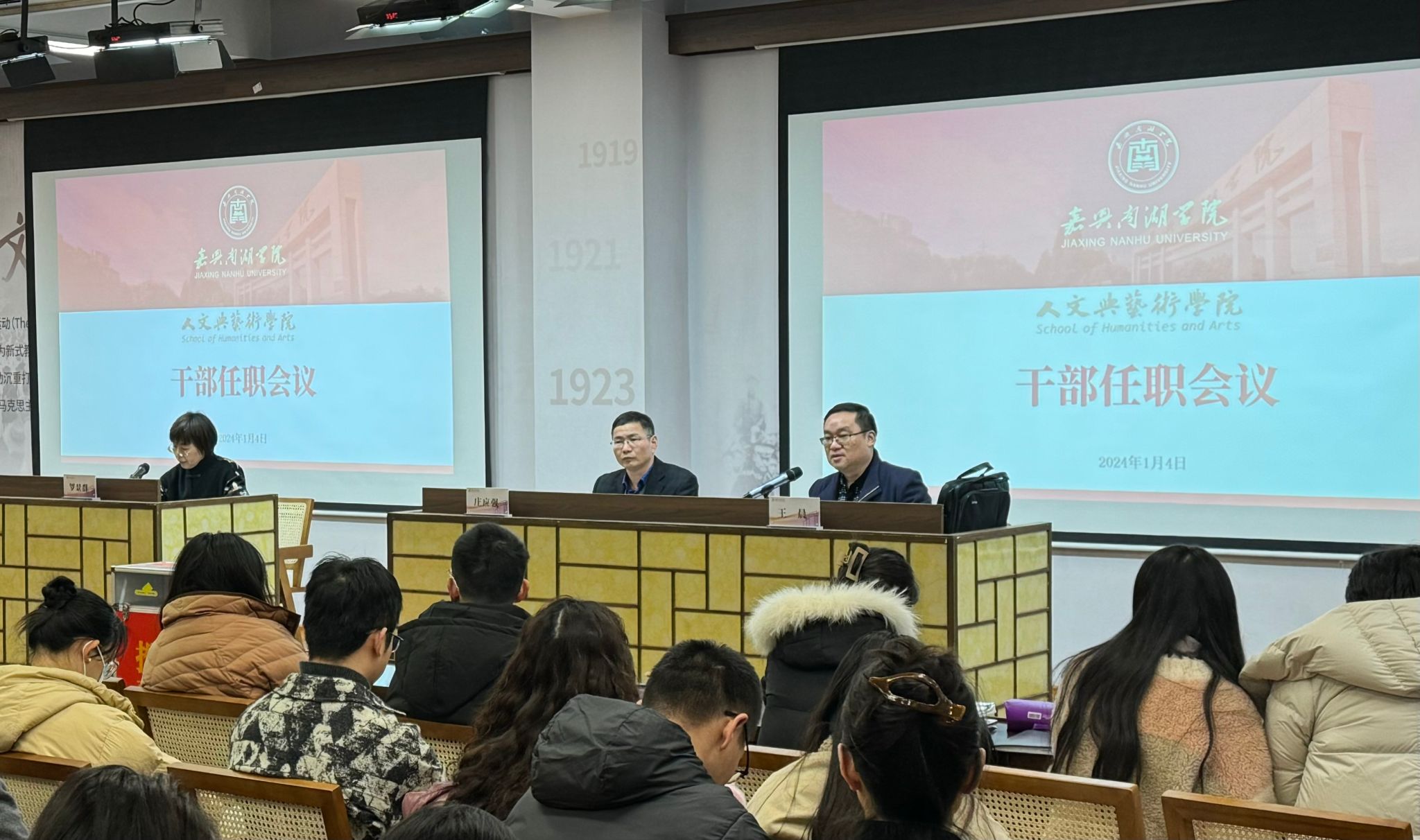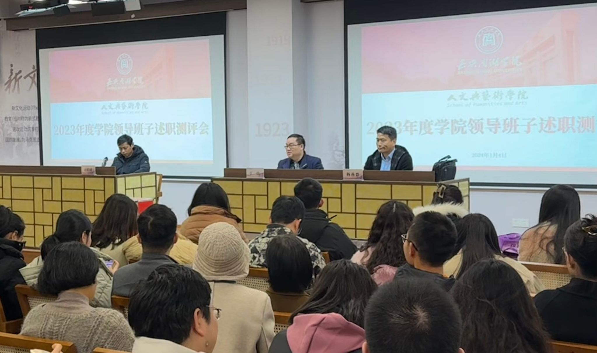1月4日上午,亚洲成av无码亚洲人在图书馆一楼报告厅召开干部任职大会暨2023年度领导干部民主测评。校党委委员、组织部部长庄应强,亚洲成av无码亚洲人领导班子及全体教师参加会议。会议由学院党委书记王晨主持。