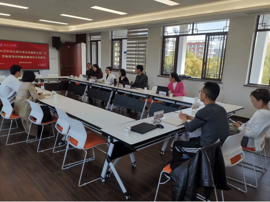 座谈会首先由赵伯祥副院长向沈主委及金主任介绍乡贤与家风研究院的基本情况及研究成果。其次由吴可嘉、唐明玉老师阐释家风模型及模型中的“忠”“养”在沈钧儒家族家风中的具体体现,胥玲英老师介绍了沈钧儒家族家风项目进社区的宣传活动及研究项目今后工作的计划。最后由沈主委发表讲话。沈主委对研究项目高度认可,认为项目与市民盟工作需求高度契合,可以在某些点位上开展合作,可为项目研究提供资源链接、活动宣传、资金募集等方面的帮助,并就今后长期合作模式进行了探讨以及研究项目工作安排提出了具体而宝贵的建议。