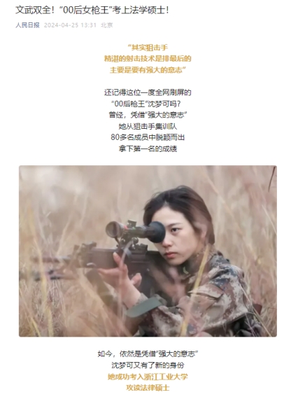 新华每日电讯:战士→硕士!00后“枪王”沈梦可,考研上岸!