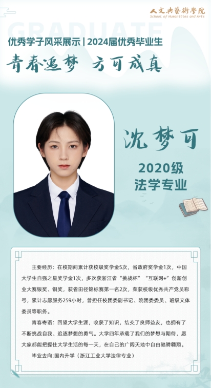 近日,“人民日报”“新华每日电讯”“浙江新闻”“教育之江”等多家国家级、省级媒体关注我院法学专业沈梦可同学考研成功。昔日“00后女枪王”,今日法律专业准研究生,沈梦可的经历为我们清晰刻画了当代青年奋斗不止的青春面貌。