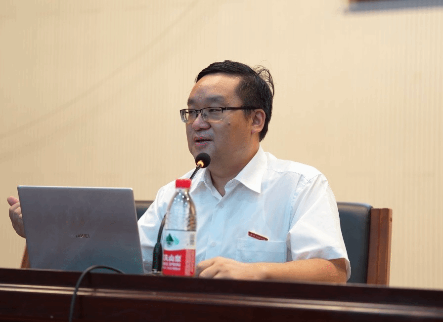 中文系副教授夏江宁老师作为教师代表发言,他分别从学习、生活、做人三个层面激励同学们坚持学习、踔厉分发,坚持探索突破、勇往直前,在大学里度过充实而有意义的时光。