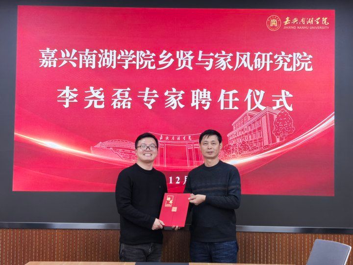 讲座前,赵伯祥为李尧磊颁发乡贤与家风研究院专家聘任证书。
