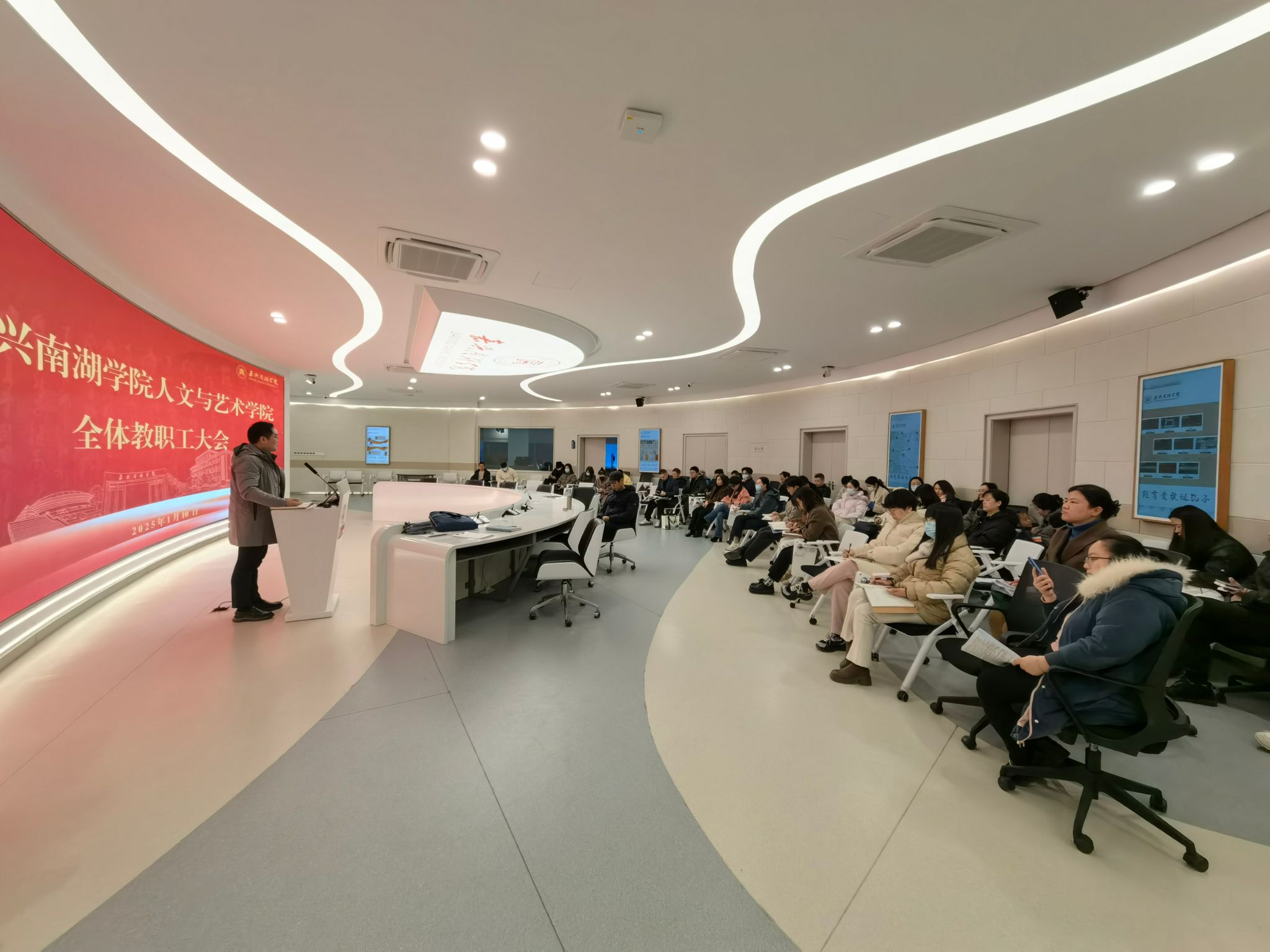 2025年1月10日上午,亚洲成av无码亚洲人在融媒体中心召开学期末全体教职工大会。会议由学院党委书记王晨主持。