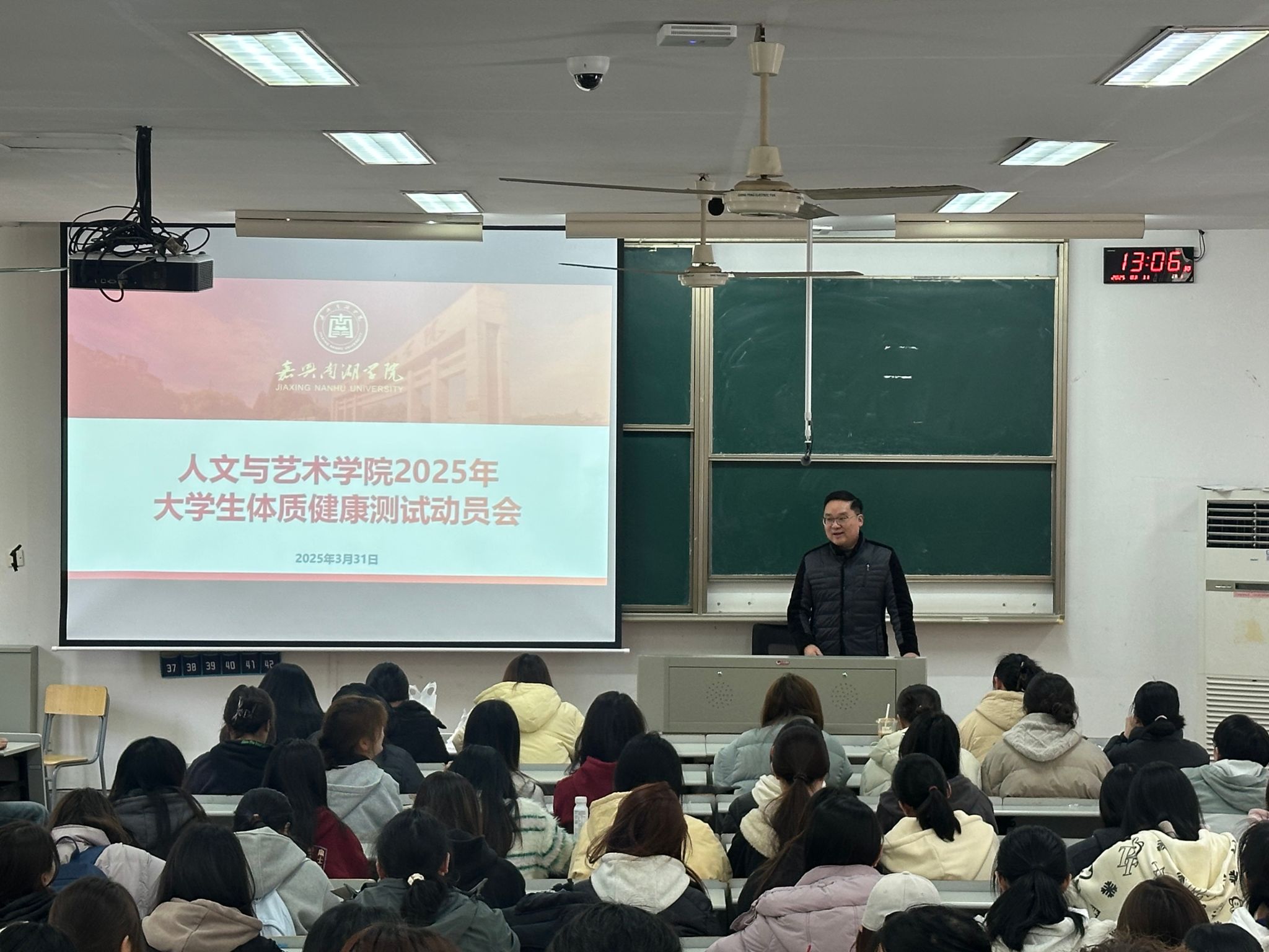 为贯彻落实我校“大体育”教育建设实施方案精神,推动学生积极参加体育锻炼,有效提升学生身体素质,更好地迎接浙江省2025年高校学生体质健康状况抽测工作,3月31日中午,亚洲成av无码亚洲人召开学生体质健康测试动员大会。学院党委书记王晨、党委副书记罗景群、辅导员及2022级学生100余人参加会议。