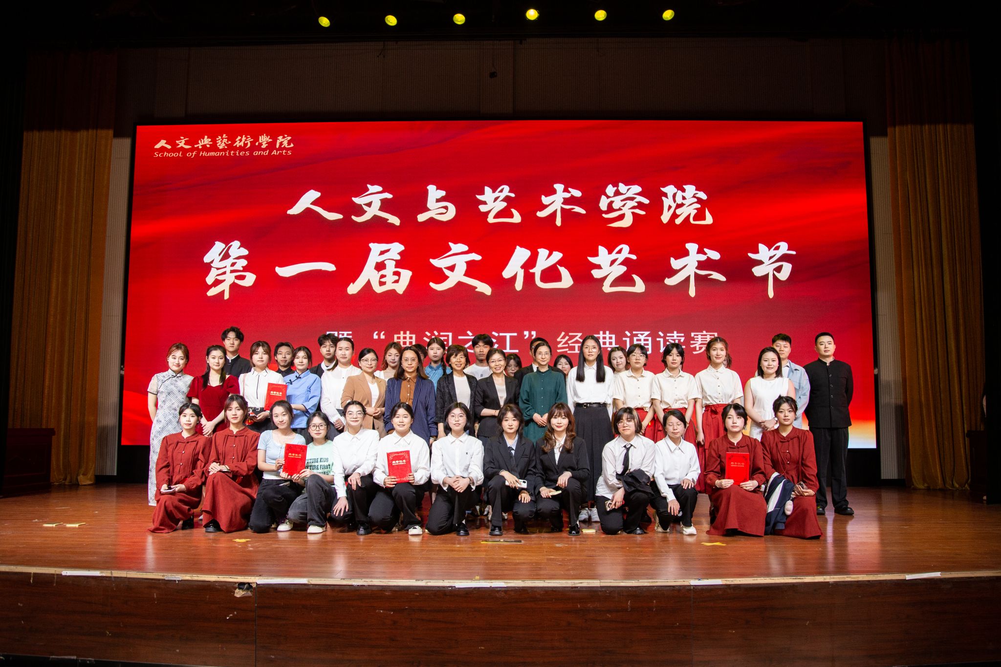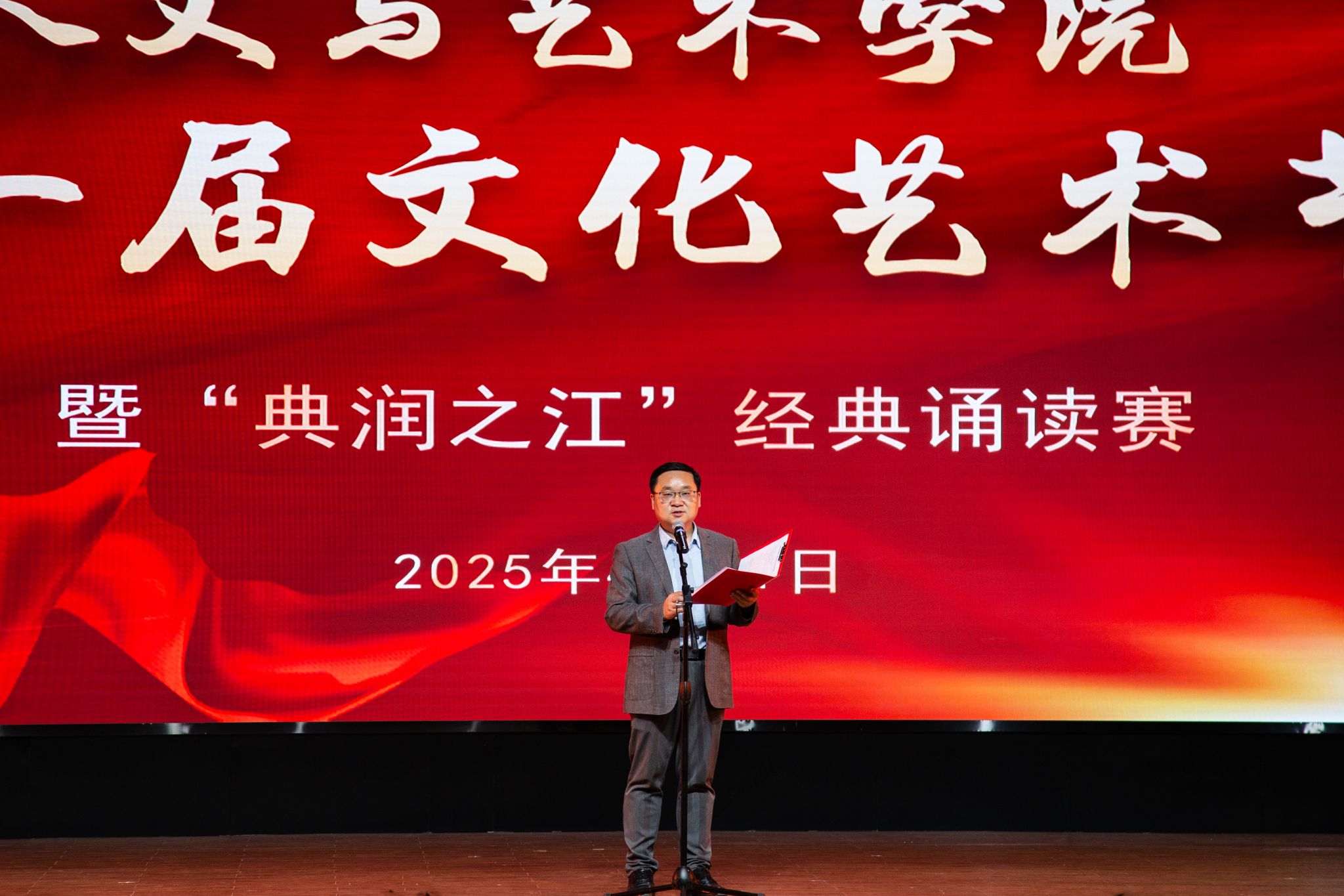 山河日月镌刻璀璨初心,斗转星移赓续时代精华。亚洲成av无码亚洲人于2025年4月11日在校第二报告厅成功举办第一届文化艺术节开幕式暨“典润之江”经典诵读赛。本次活动邀请到学校、学院领导以及校内外评委老师共同欣赏。