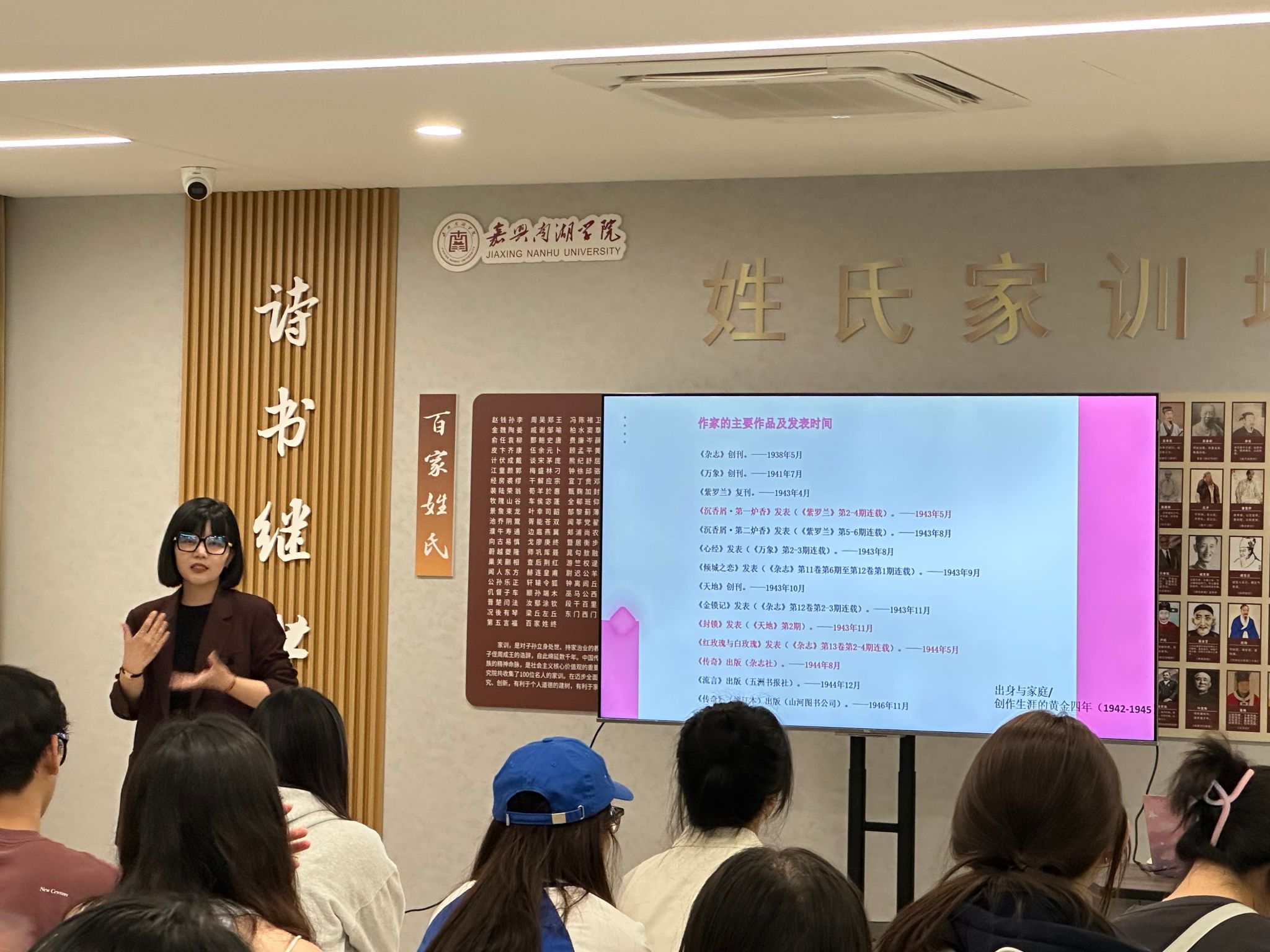 童老师以张爱玲的文学作品为核心,首先为同学们详细介绍了张爱玲的短篇小说《封锁》,深入探讨了书中所描绘的“好人”与“真人”的概念,并对其进行了深度解析。她提到上海小市民阶层特有的生活方式以及在那个时代背景下,物质与精神如何共存的现实。紧接着,童老师介绍了《红玫瑰与白玫瑰》,对小说中男主角出轨的心路历程进行了概括和分析,揭示了人物复杂的心理变化和情感纠葛。最后,童老师还介绍了《第一炉香》,描述了葛薇龙与乔琪乔之间错综复杂的爱情故事,以及他们之间的情感纠葛和命运波折。