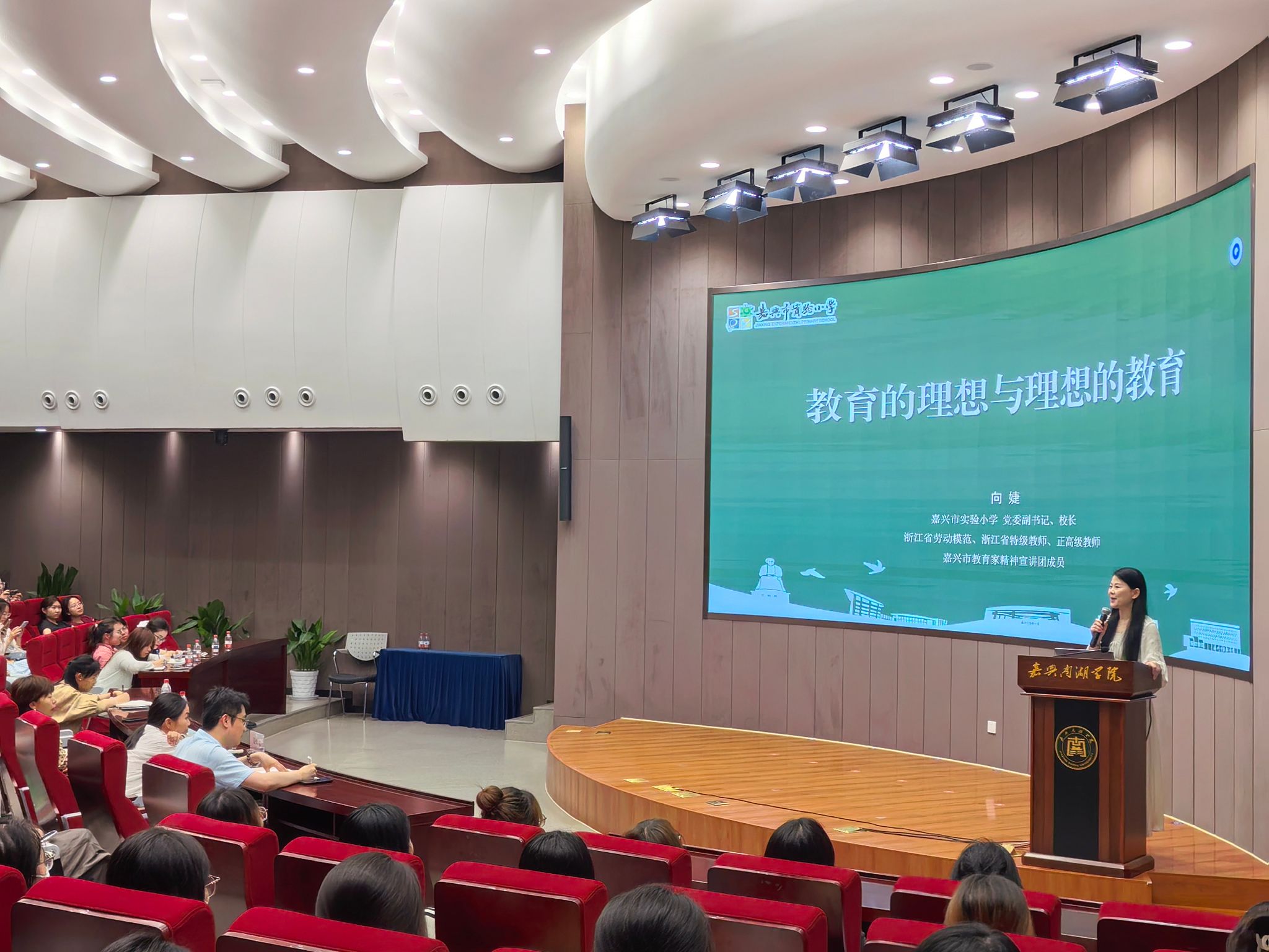 5月16日下午,浙江省劳动模范、嘉兴市劳模协会会长、嘉兴市实验小学校长、正高级教师向婕来校宣讲。本次劳模宣讲由校工会、创业学院、亚洲成av无码亚洲人联合主办,亚洲成av无码亚洲人120余名师生参与。