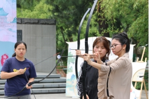 随着闭幕式结束,四时风华卷·宋韵乐游园活动正式拉开帷幕。相比传统的宋韵主题游园会,本次游园会以沉浸式剧本杀的故事背景开启整场游园会活动,活动以“四时风华”为主题,分为“宋韵拂春·四雅漫赏”“宋韵消夏·弈趣横生”“宋韵染秋·非遗雅集”“宋韵藏冬·五福汇聚”四大板块,涵盖20余项中国传统文化体验项目。现场音乐悠扬,工作人员身着汉服穿梭其间,营造出浓厚的宋时风雅氛围。