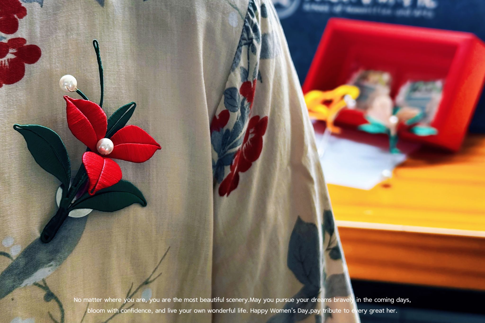 除手工缠花作品外,学院还为全体毕业生准备了定制款毛毡手提袋和手绘学院背景冰箱贴,纪念意义深刻。近年来我院积极倡导人文情怀,在学院文化建设、环境育人建设、美育引领等方面开展诸多创新探索,让广大在校师生和毕业校友感受温暖的“归属感”。