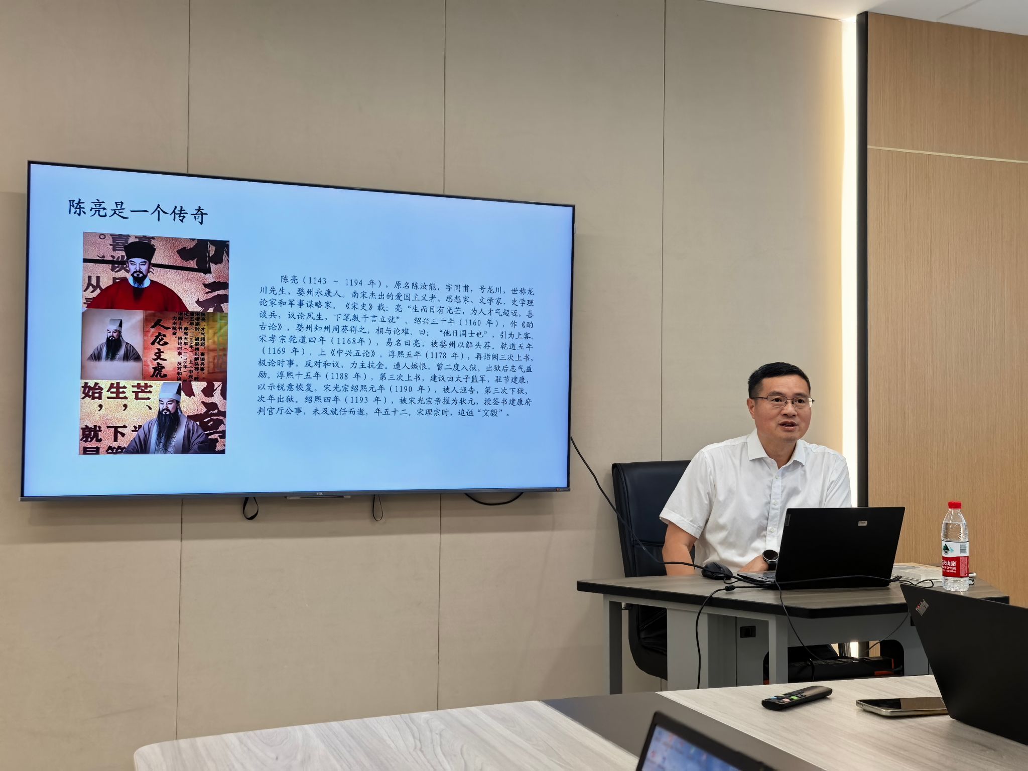8月5日上午,陈亮文化研究会会长、永康市人大常委会副主任、我校家风研究院专家顾问章锦水应邀于学校融媒体中心研讨室,作题为《陈亮学术思想的传扬与当代实践》的学术报告。学院党委书记王晨及各专业教师代表10余人聆听了本次报告。报告由学院副院长潘晓侃主持。