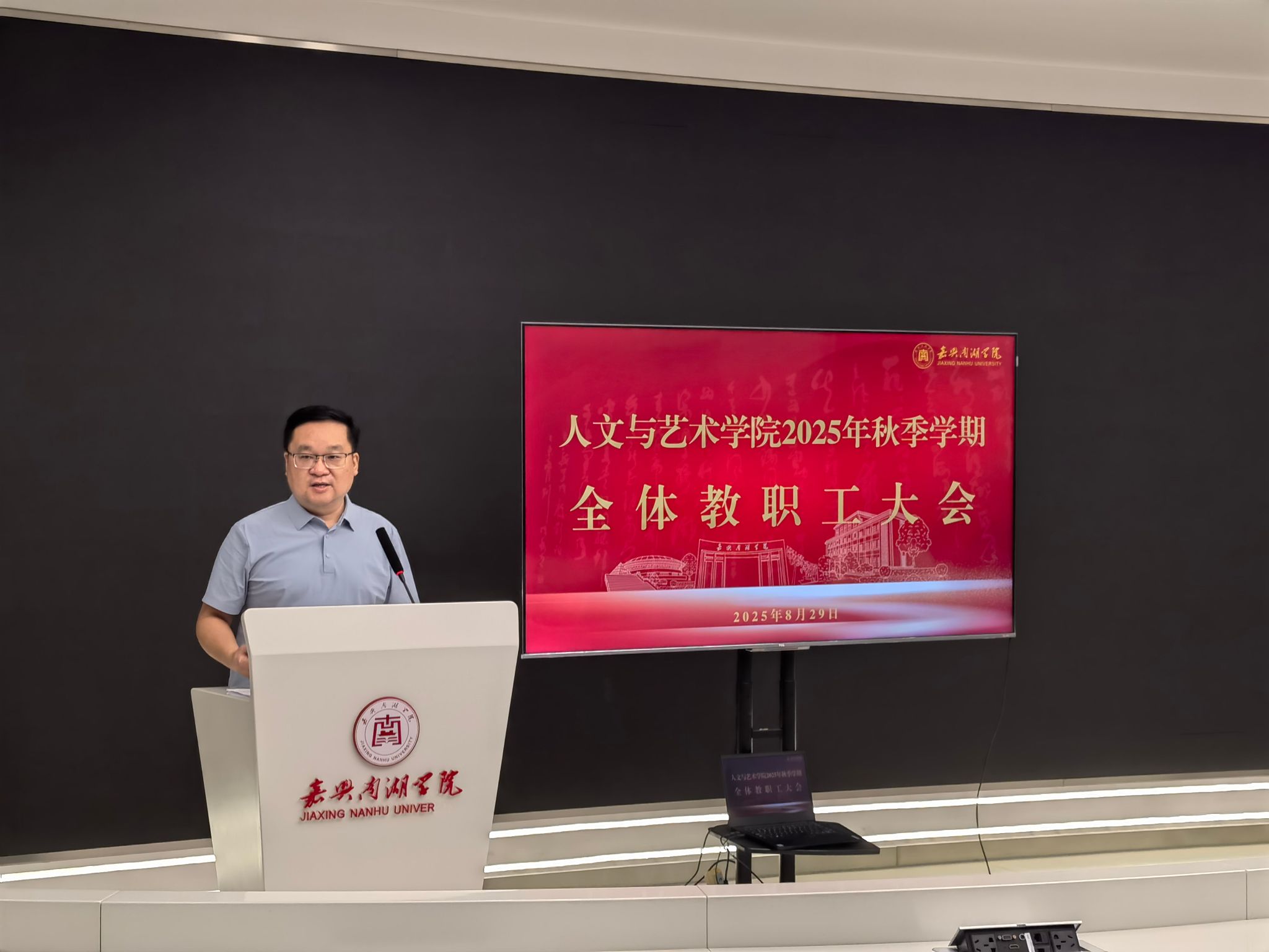 8月29日上午,亚洲成av无码亚洲人在融媒体中心召开2025年秋季学期第一次全体教职工大会暨教职工政治理论学习会。学院党政领导班子及全体教职工参加会议。会议由学院党委书记王晨主持。