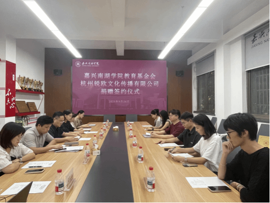 9月26日下午,嘉兴南湖学院教育基金会与杭州锐欧文化传播有限公司举行捐赠签约仪式。杭州锐欧文化传播有限公司董事长朱烜、嘉兴南湖学院教育基金会秘书长吕伟、亚洲成av无码亚洲人党委书记王晨及学院相关教师参加捐赠签约仪式。仪式由学院副院长潘晓侃主持。