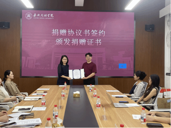 校教育基金会秘书长吕伟介绍学校基本情况并对公司捐赠的善举表示感谢,高度评价该公司作为深耕外语教育的行业标杆,长期践行教育公益、反哺社会的担当与情怀。她表示,通过与欧罗外语合作,南湖学子能够借助欧罗外语的平台,进一步营造爱学想学能学的语言学习氛围,为学校国际化发展提供有益助力,助推更高质量的毕业生就业。希望双方进一步加强合作,实现资源共享、优势互补,共同推进校企协同育人双赢、服务地方发展的良好局面。